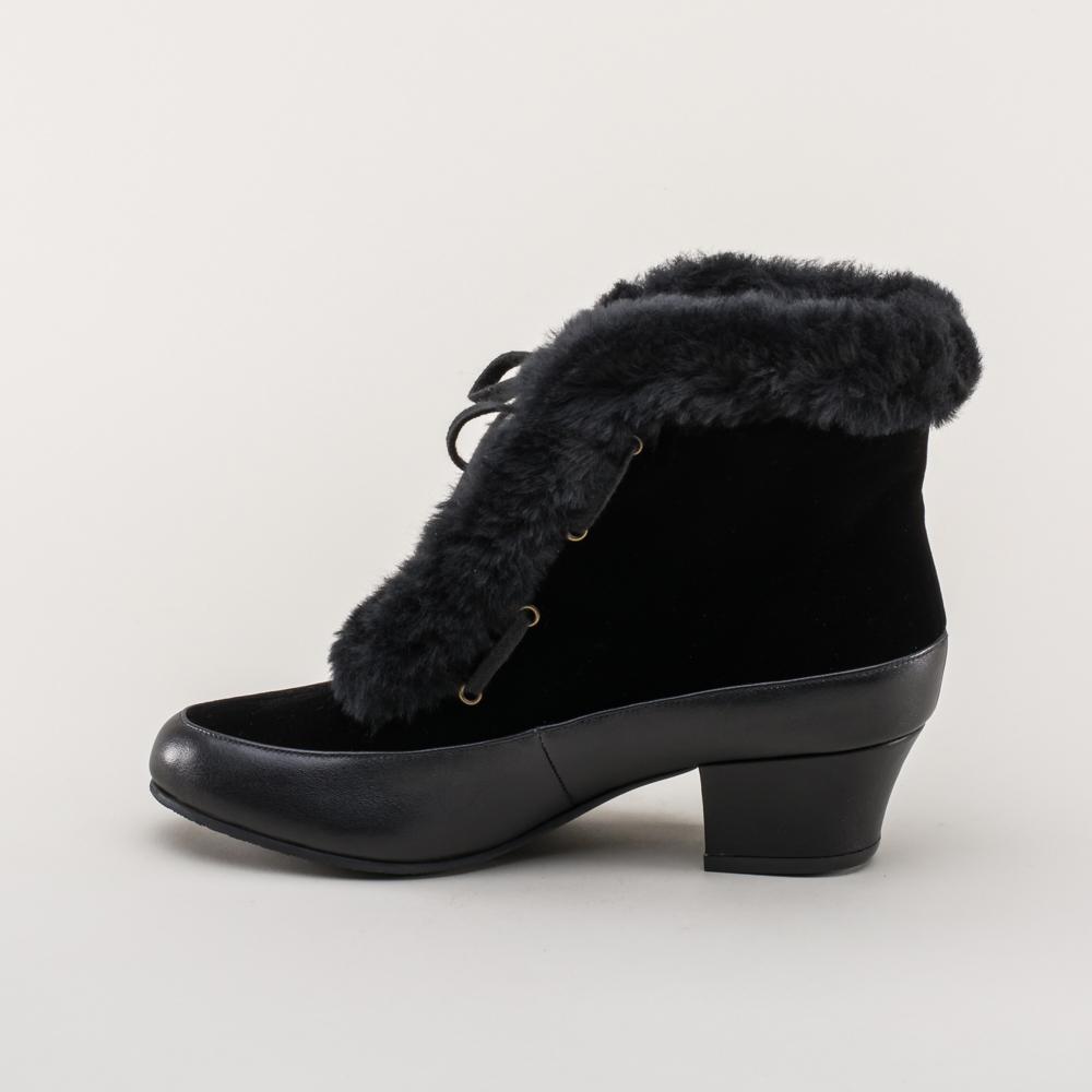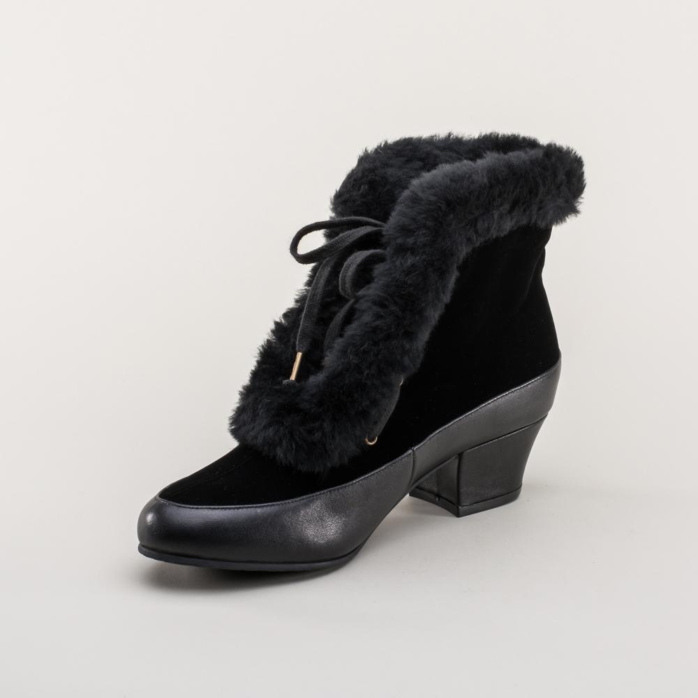 Alpen Retro Winter Booties are just the fashionable footwear you need for your winter vintage outfits. These booties are based on original Montgomery Ward overshoes, also known as galoshes, but are made as regular boots. We've stayed faithful to the velveteen upper and houndstooth lining, opting to use ethically sourced sheepskin trim and leather foxing and heel. These beautiful boots are cozy and practical for winter wear, with rubber soling.