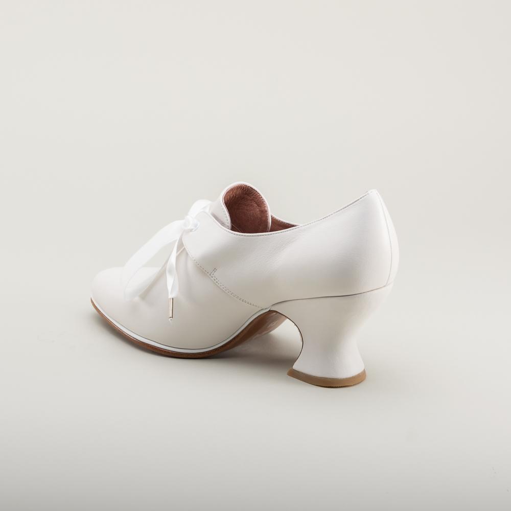 Named for the famous Madame de Pompadour, these heels are closely based on extant early 18th century shoes found in museums, and feature an easy tabbed closure that can be laced with your favorite colored ribbon, cockade, or pom-pom decoration.