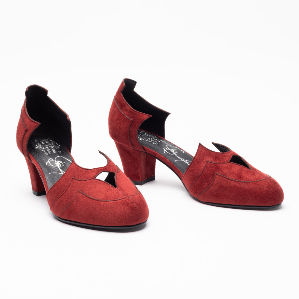 From the mind of Christine McConnell, introducing the Christine Pumps. Inspired by the open-sided pumps that were popular in the 1930s and 1940s, these sleek, sexy pumps from our collaboration collection with Christine McConnell are a veritable vision. Faux suede uppers in angular dimensions are set off by an alluring keyhole on the toe. Built on our perfectly balanced 2.5"/6.35 cm Cuban heel, leather-free Christine Pumps are a surefire way to add intrigue to your ensemble.