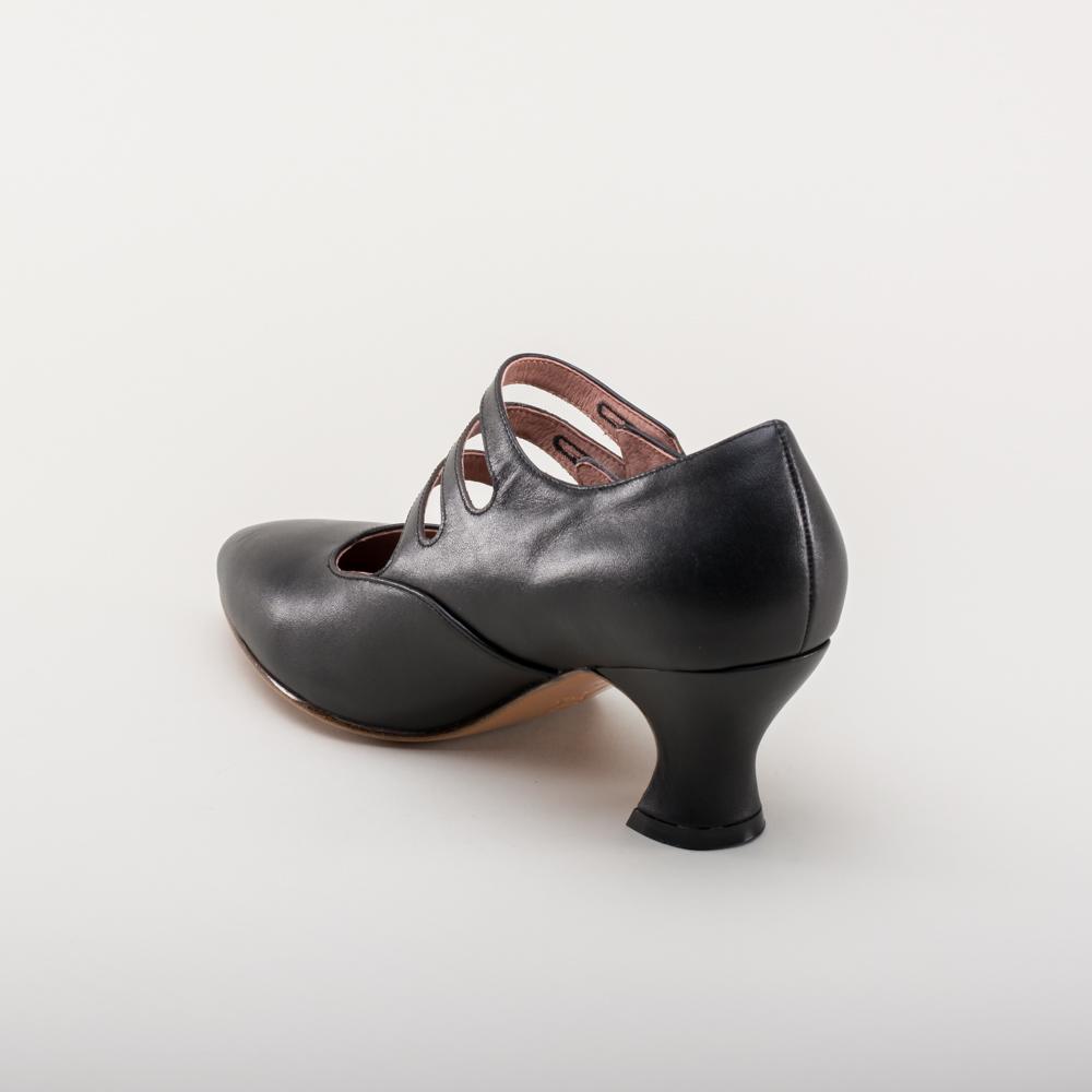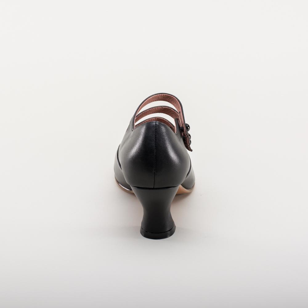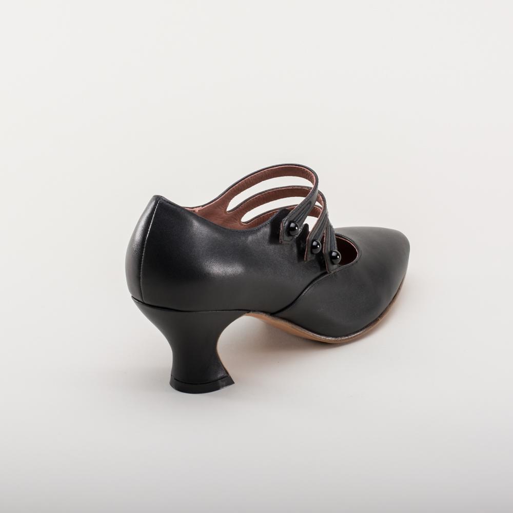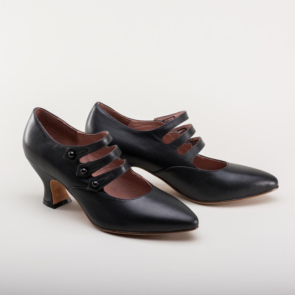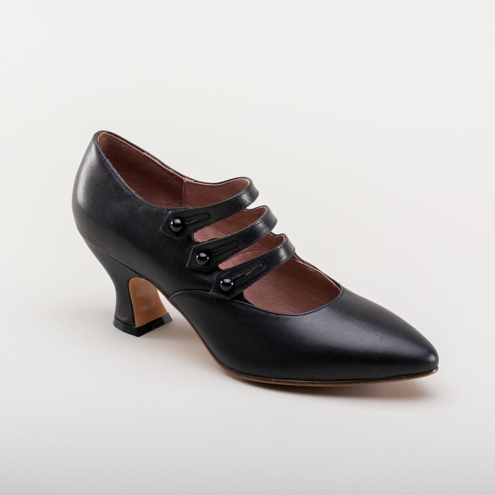 Bellatrix Edwardian Shoes are a stunning and versatile recreation of a classic Edwardian design. Bellatrix feature the iconic side-button triple straps so fashionable in this period. The 2.25 in / 5.7 cm French heel is delicate and well-balanced, paired with a pointed toe to create the perfect Edwardian and 1920s silhouette. Wear Bellatrix with fashion from the turn of the 20th century all the way through the mid-1920s, or with your Gothic, Lolita, cottagecore, dark academia, and historybounding outfits, as well as historical WWI, Downton Abbey and particularly Titanic era dress.
