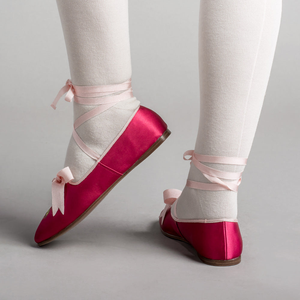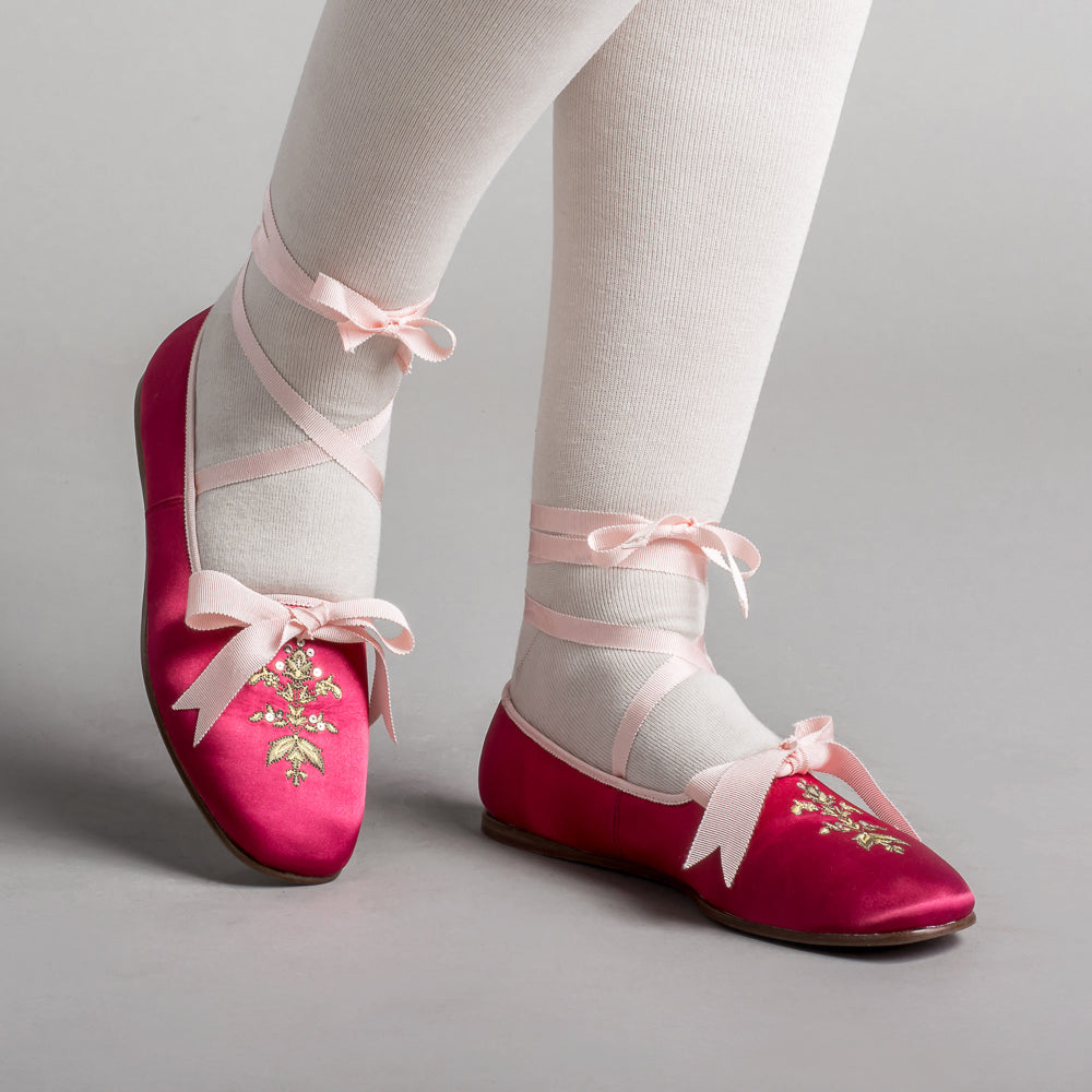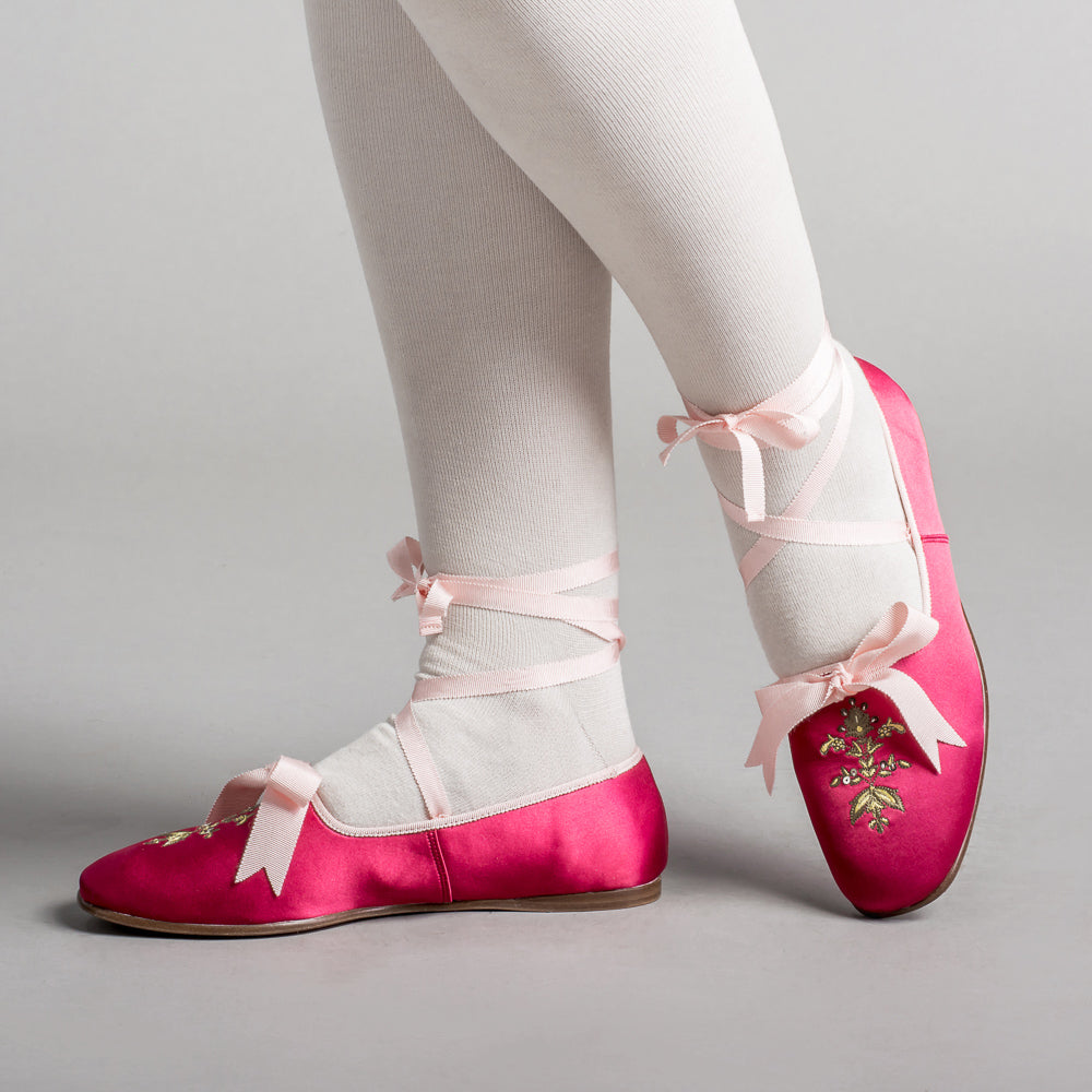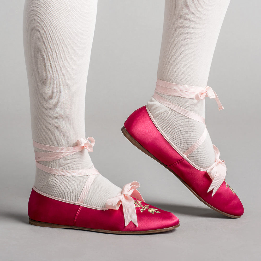 Bring your Regency dreams to life with the perfect pair of delicate dancing slippers. The Penelope slippers offer beauty, comfort, and versatility with so many color pairings, ways to wear the ribbons, and a soft yet durable construction.