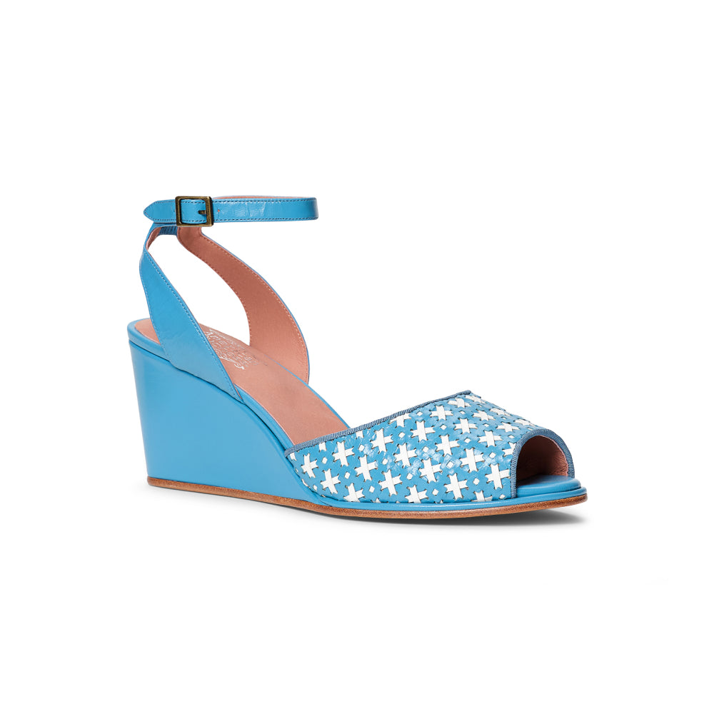 PRE-ORDER Judy 1940s Wedges (Blue/Ivory)