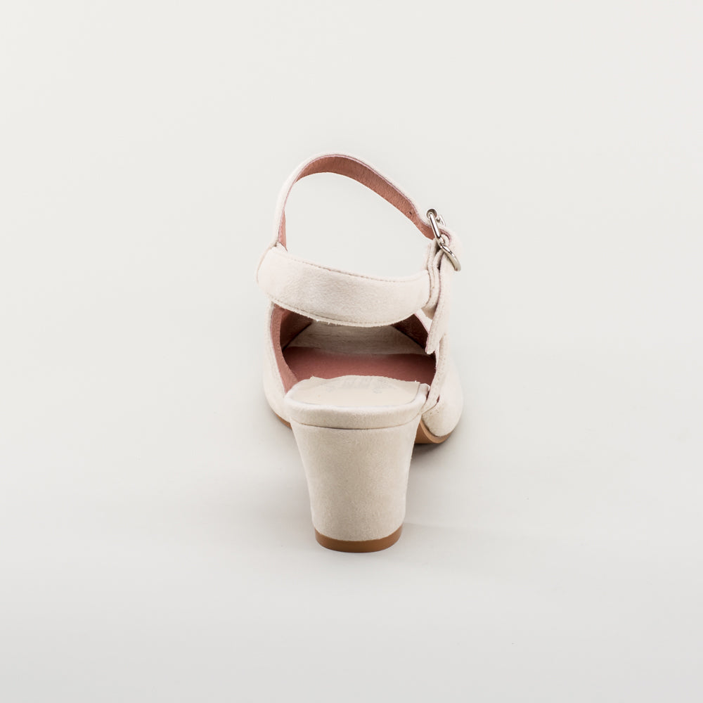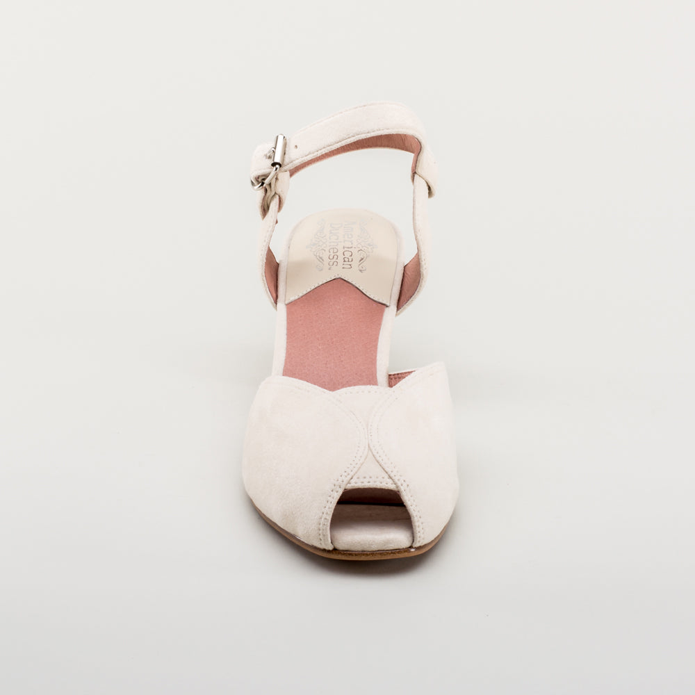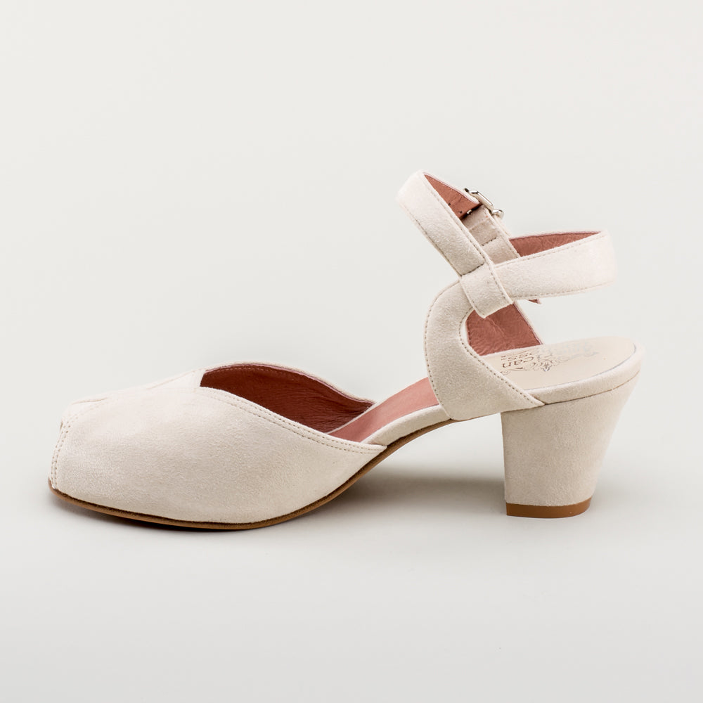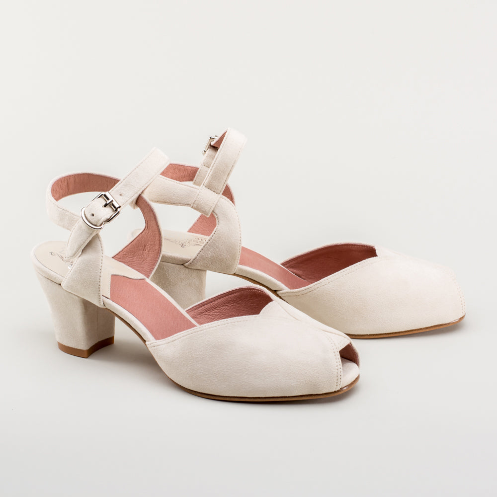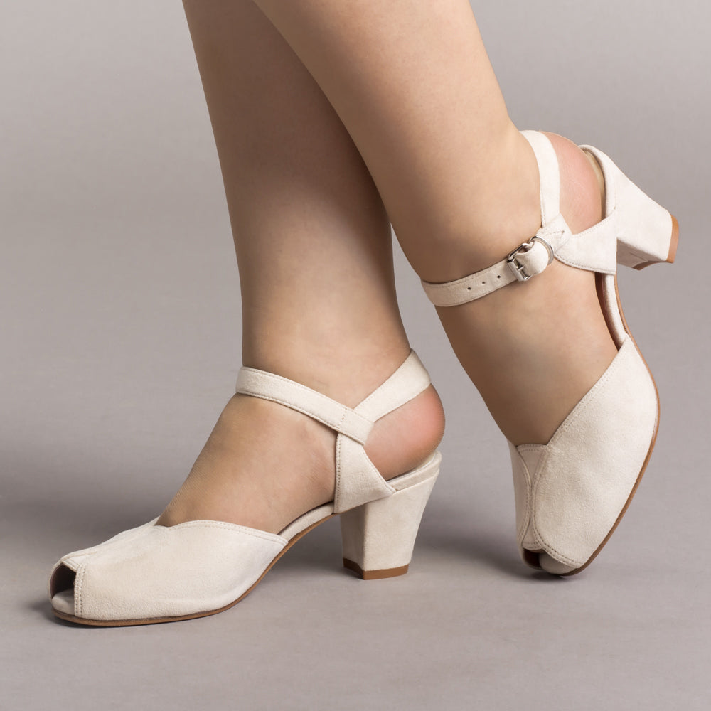 If you're looking for the perfect vintage sandal, look no further than Lido. These pretty and practical shoes are closely based on an original late 1940s to early 1950s faux suede sandal in our collection. The design is perfectly balanced, made in a durable everyday material, with secure buckle straps and a tiny peep toe, making the Lidos perfect for dancing, walking, and lounging.
