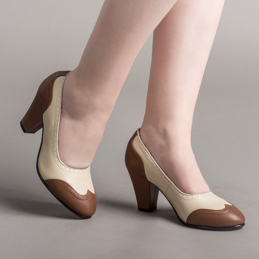 Peggy 1940s Spectator Pumps (Coffee/Cream)