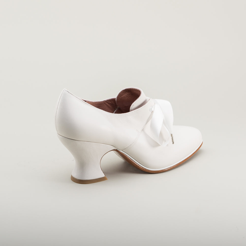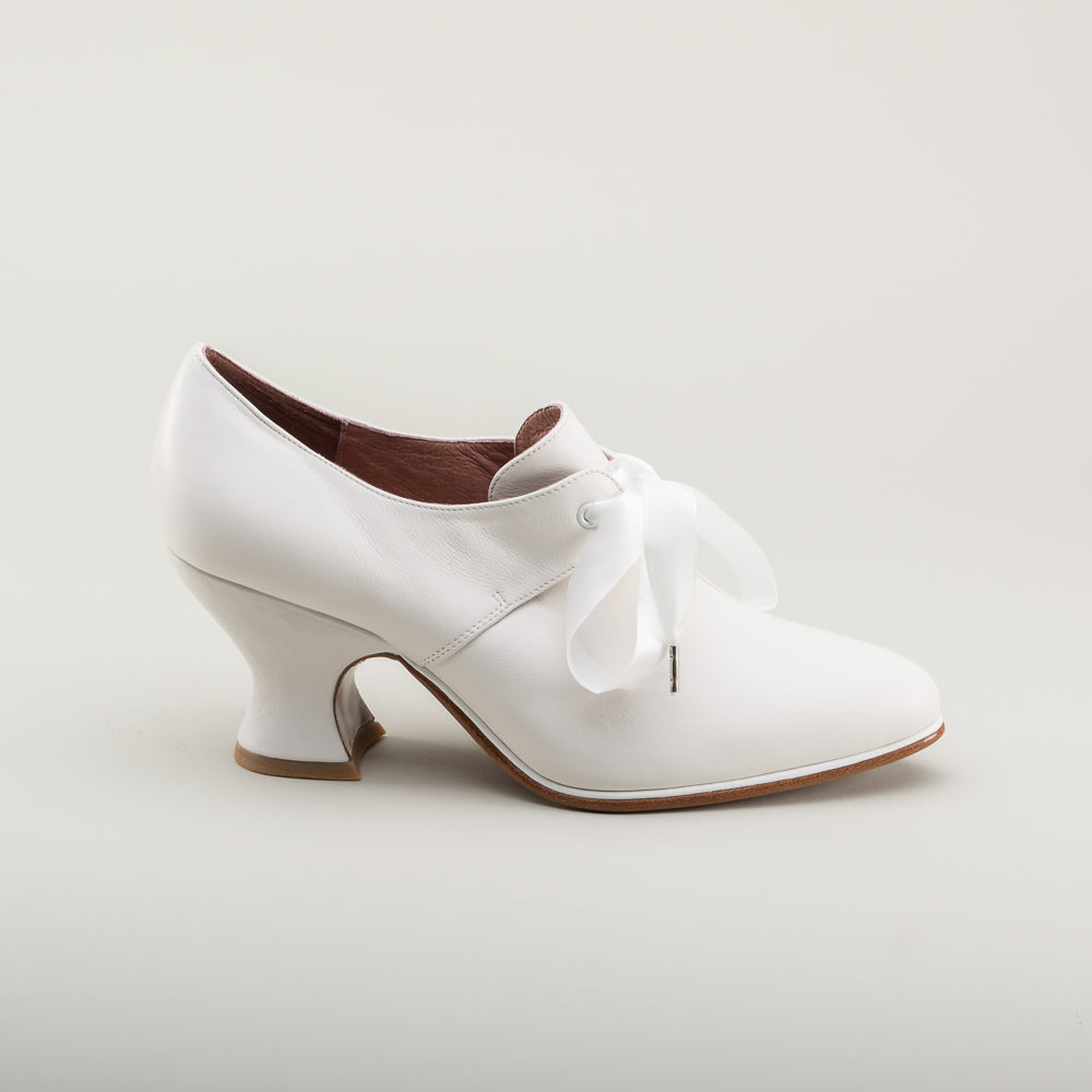 Named for the famous Madame de Pompadour, these heels are closely based on extant early 18th century shoes found in museums, and feature an easy tabbed closure that can be laced with your favorite colored ribbon, cockade, or pom-pom decoration.